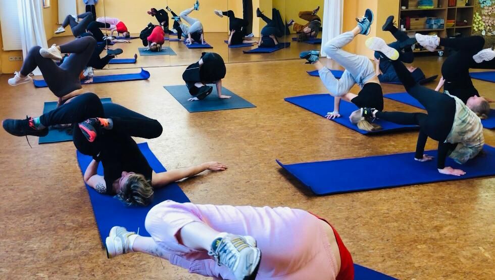 Das Jahr 2023 begann mit einem guten Groove: Die Dozentin Brit Bauermeister brachte Schwung in die Fortbildungsgruppe. Unter anderem lernten die Teilnehmenden Floorwork kennen, improvisierten und gingen in ein kleines. (und freundliches) Dance Battle. Alle hatten viel Spaß und nahmen wichtige Eindrücke dieses Tanzstiles mit.